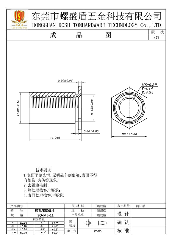 SO-M5-11 壓鉚螺母柱