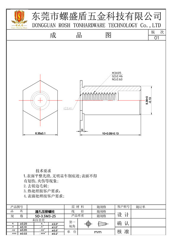 SO-3.5M3-25 壓鉚螺母柱