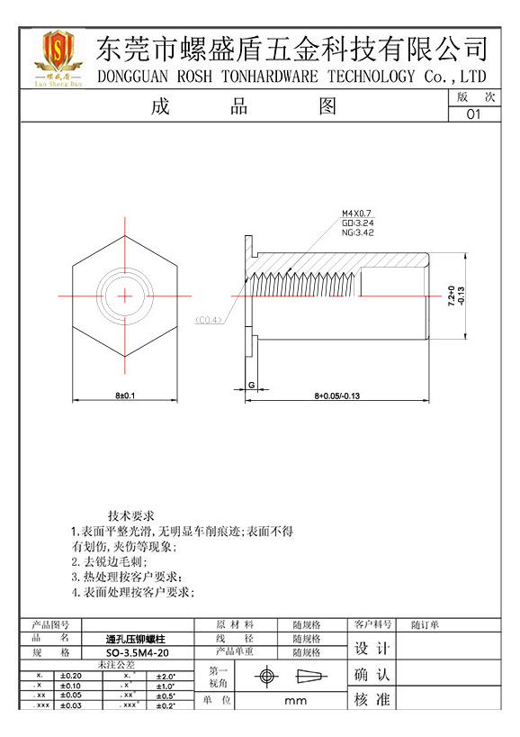 SO-3.5M4-20 壓鉚螺母柱