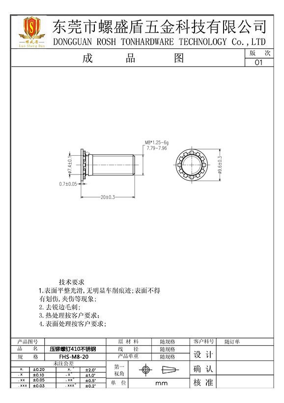 壓鉚螺絲410不銹鋼公制