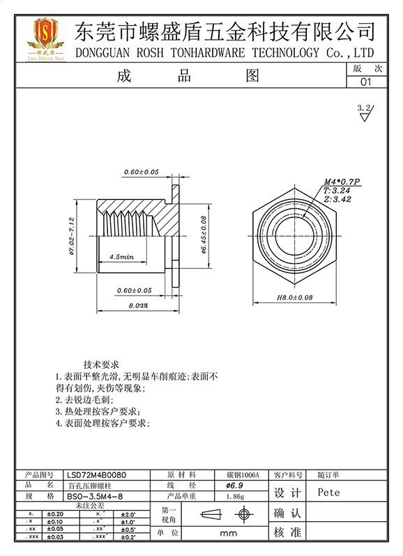 BSO-M4-8 壓鉚螺母柱
