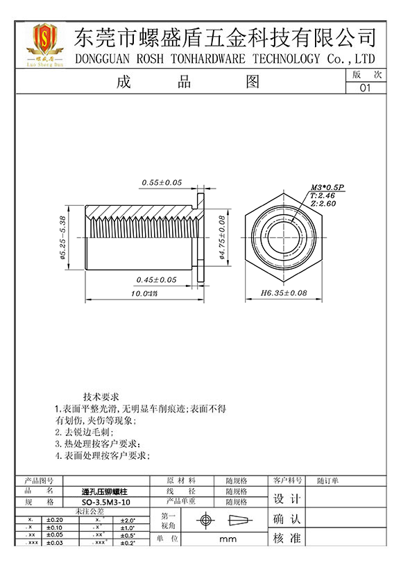 SO-3.5M3-10 壓鉚螺母柱
