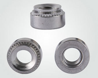 所以為更加方便可靠的進(jìn)行安裝連接,常常用到的一種是壓鉚工藝。其原理是通過(guò)壓花齒壓入鈑金的預(yù)置孔位,一般而言預(yù)置孔的孔徑略小于壓鉚螺母的壓花齒,通過(guò)壓力使壓鉚螺母的花齒擠入板內(nèi)使導(dǎo)致孔的的周邊產(chǎn)生塑性變形,變形物被擠入導(dǎo)向槽,從而產(chǎn)生鎖緊的效果。