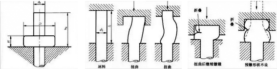 當(dāng)長徑比過大(≥3.5),在鐓鍛時毛坯會產(chǎn)生失穩(wěn),開始出現(xiàn)縱向彎曲折疊,變形后出現(xiàn)頭部偏心。