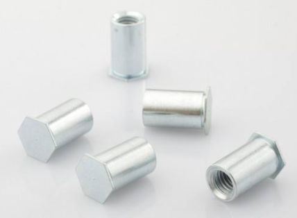 壓鉚要求鉚接的壓鉚件的硬度要遠(yuǎn)大于基材的硬度,在外界壓力下壓鉚件使基體材料發(fā)生塑性變形,并擠入壓鉚螺母柱結(jié)構(gòu)中預(yù)制槽內(nèi),從而實現(xiàn)兩個零件的可靠連接。普通低碳鋼、鋁合金板、銅板板材適合于壓接壓鉚螺母柱。不銹鋼和高碳鋼板材因為材質(zhì)較硬,需要特制的高強度的壓鉚件如材質(zhì)SUS416。如整體機箱結(jié)構(gòu)復(fù)雜積累誤差大以致鉚裝螺母的相對位置誤差很大,造成裝配困難。即在相應(yīng)的壓鉚螺母位置上采用壓鉚式浮動螺母,可很好地改善這一情況。注意壓鉚位置一定要有足夠空間。
