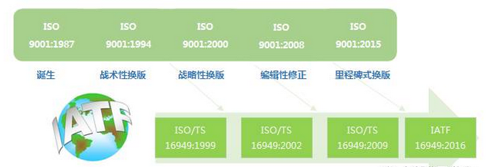 IATF(International Automotive Task Force)國(guó)際汽車工作組 是由世界上主要的汽車制造商及協(xié)會(huì)于1996年成立的一個(gè)專門機(jī)構(gòu)。在和ISO9001:2000版標(biāo)準(zhǔn)結(jié)合的基礎(chǔ)上,在ISO/TC176的的認(rèn)可下,制定出了ISO/TS16949 :2002 這個(gè)規(guī)范。2009年更新為:ISO/TS16949:2009.目前執(zhí)行的最新標(biāo)準(zhǔn)為:IATF16949:2016。