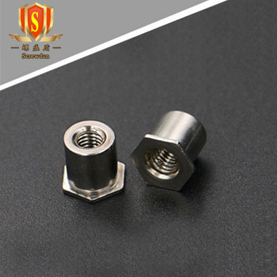 上面這種叫SO(通孔)壓鉚螺柱,當(dāng)然,還有盲孔的,就是六角這一頭是不通的,叫BSO,它長的是這樣的: