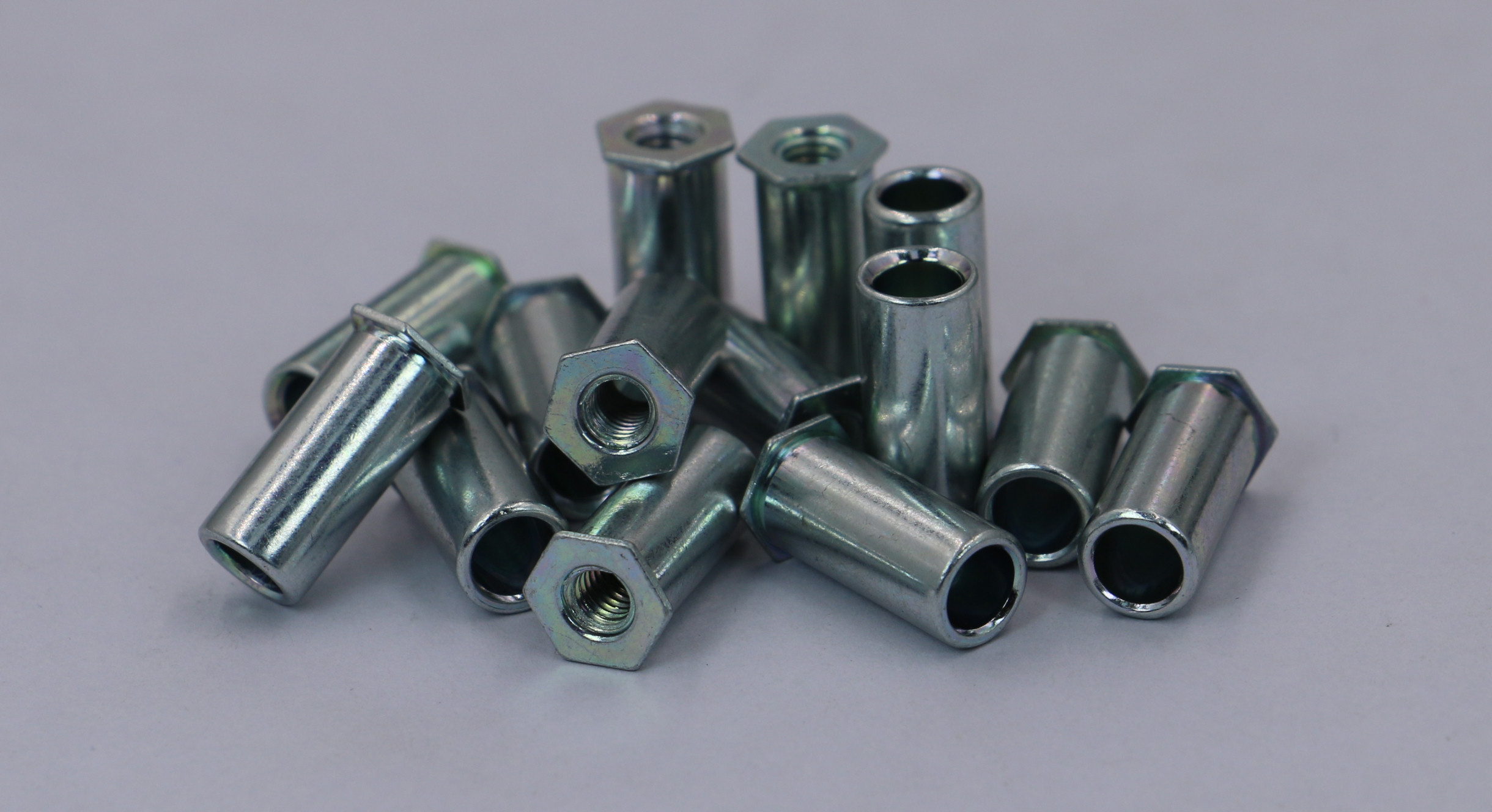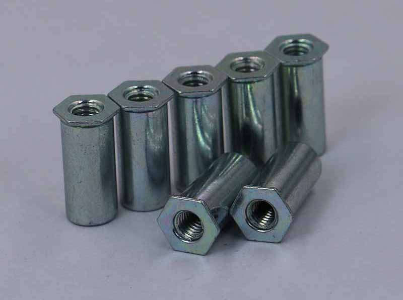 7、通孔螺母柱長(zhǎng)度10mm以下皆為滿絲,在10mm以上可六角端面方(Ⅰ型)或圓端面方面擴(kuò)孔(Ⅱ型) 壓鉚螺柱開(kāi)孔尺寸、壓鉚螺母柱