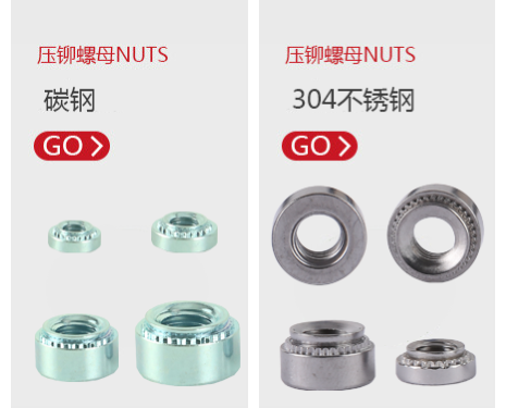 壓鉚螺母從材質(zhì)上分為:壓鉚螺母碳鋼S(公制/英制)、壓鉚螺母304不銹鋼CLS(公制/英制)、壓鉚螺母410不銹鋼SP(公制/英制),分別應(yīng)于不同的使用環(huán)境,壓鉚螺母常用于機(jī)箱、機(jī)柜、鈑金、薄板。
