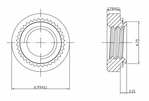 其原理是通過(guò)壓花齒壓入鈑金的預(yù)置孔內(nèi),一般而方預(yù)置孔的孔徑略小于壓鉚螺母的壓花齒,通過(guò)壓力使壓鉚螺母的花齒擠入板內(nèi)使導(dǎo)致孔的的周邊產(chǎn)生塑性變形,變形物被擠入導(dǎo)向槽,從而產(chǎn)生鎖緊的效果。